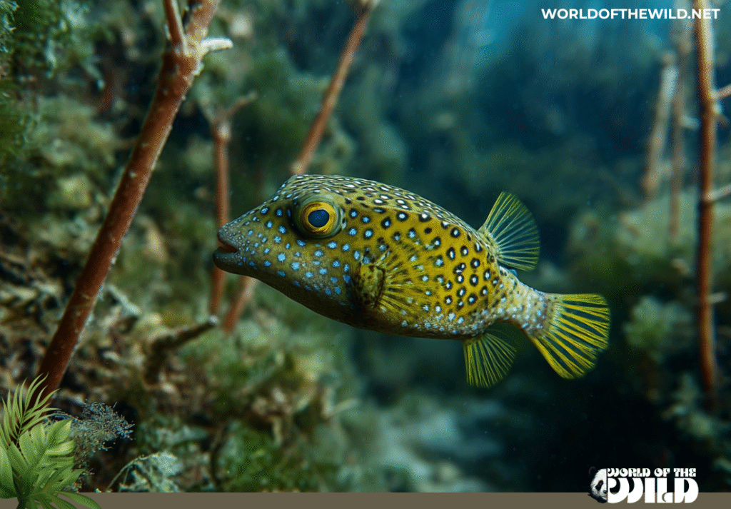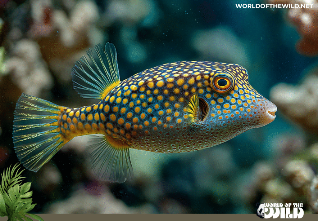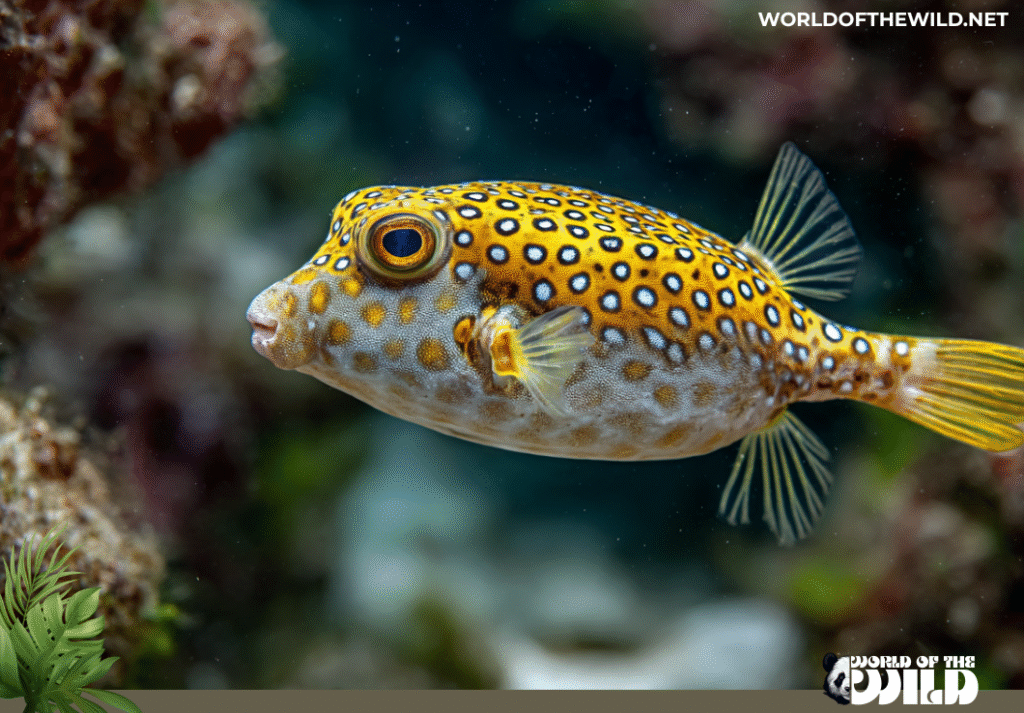 - Ostracion meleagris (Whitespotted Boxfish): Similar in body shape but with a dark brown or black body covered in white spots. Males also have a dramatic blue coloration on the sides.